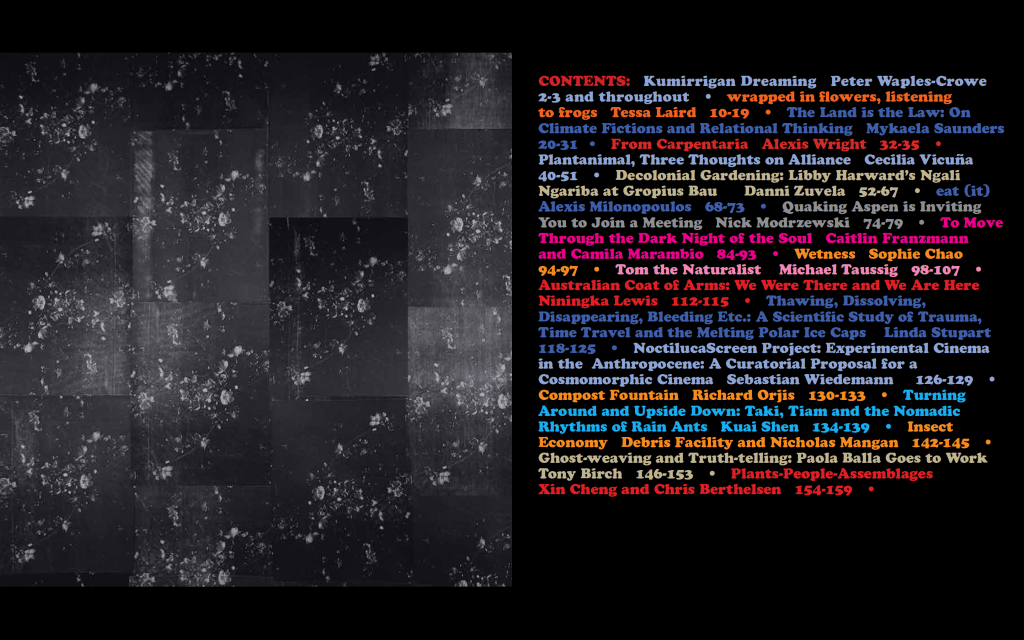 The Land is the Law: on climate fictions and relational thinking Posted on March 27, 2021April 2, 2021 by Mykaela Saunders New essay, published in Art + Australia 57.1 Issue 8: Multinaturalism, 2021. <<< Read my essay here >>> <<< Buy this beautiful issue here >>>